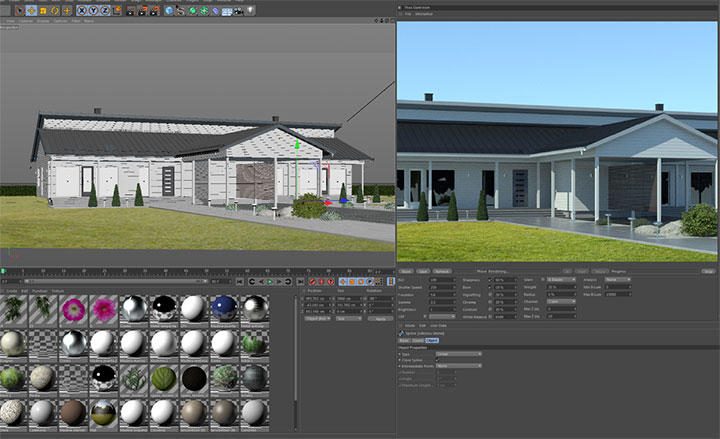 Сверхсовременные возможности пристрастного, беспристрастного и GPU рендеринга встроенные в Thea Render доступны в Cinema 4Dчерез плагин-мост. Thea Render работает с интерактивным рендером участка Cinema 4D и предоставляет свою собственную «проявочную», которая реагирует на изменения пользователем с впечатляющей скоростью. Thea предоставляет материалы, которые можно перетащить в вашу сцену из библиотеки в Cinema 4D. Дополнительно Thea Render поддерживает все виды инстанций Cinema 4D, Team Render и шейдеры с автоматической функцией запекания текстур.