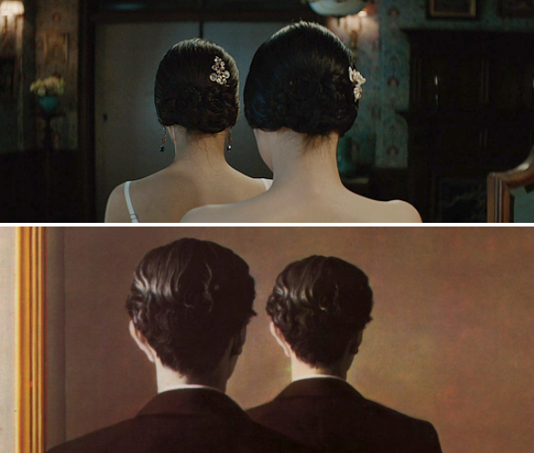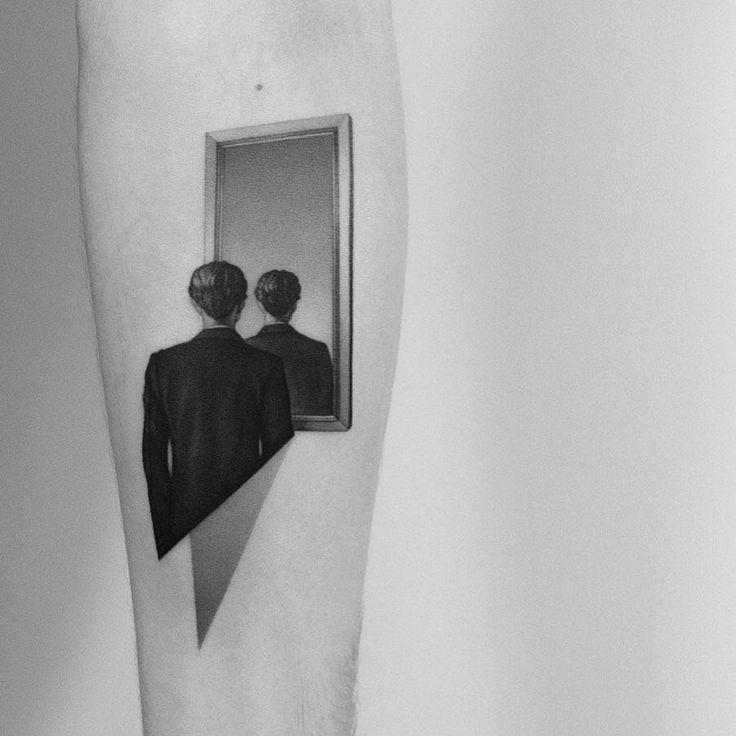 Тогда, возможно, неприятно видеть, что нет никакого отражения, вместо этого зеркало снова показывает затылок мужчины, что оставляет зрителя в недоумении, почему лицо мужчины не показано, таким образом создавая некоторую интригу, вопросы и обсуждение вокруг произведения.