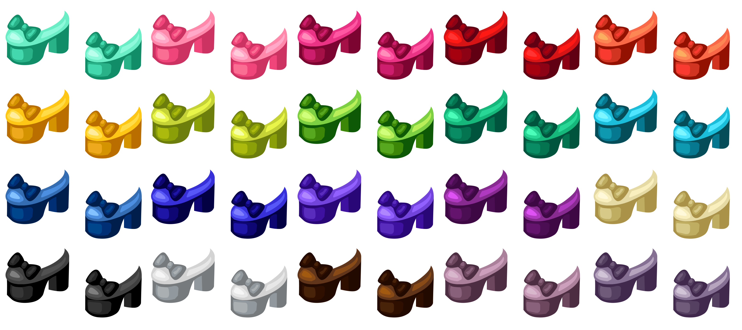 С обувью в фотошопе работать проще. Все не так сложно как может показаться на первый взгляд. Хоть элементов и несколько, но они объеденные в один спрайт и работают слаженно. Пример обуви можно скачать ниже: