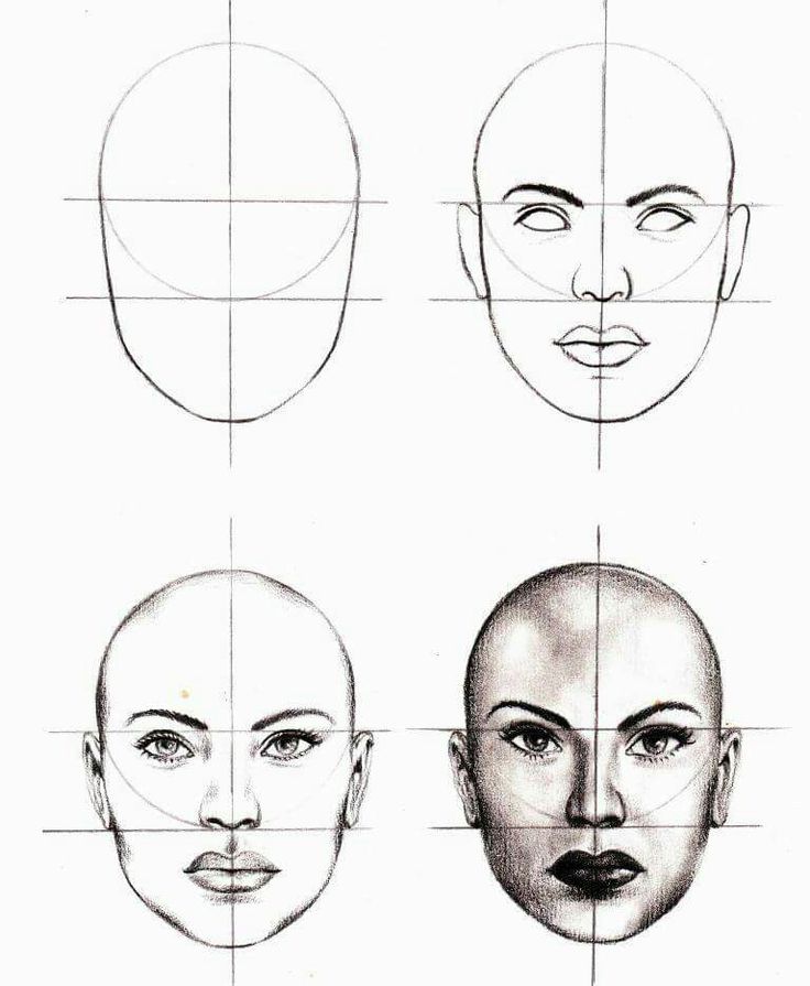 Самым первым уроком письма, который я преподал, было рисование автопортрета. Я сделал несколько якорных диаграмм для каждого шага.