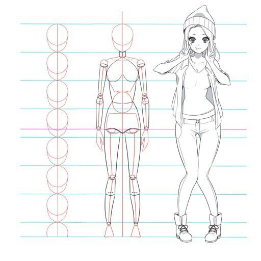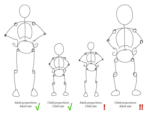 - -Если вы хотите нарисовать ребенка, разделите вертикальную линию на меньшее количество секций, поскольку дети, как правило, ниже взрослых.