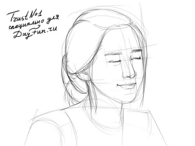 Не забываем, что расстояние между глазами равно глазу (хотя в жизни встречаются лица с близко или широко расставленными глазами).