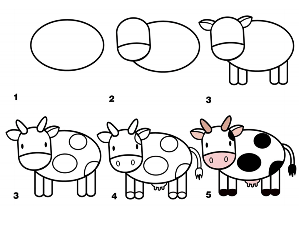 Нарисуй корову за 10 простых шагов. Вы знали? Коровы на самом деле дальтоники! Нарисуйте эту милую корову, используя круги и эллипсы.