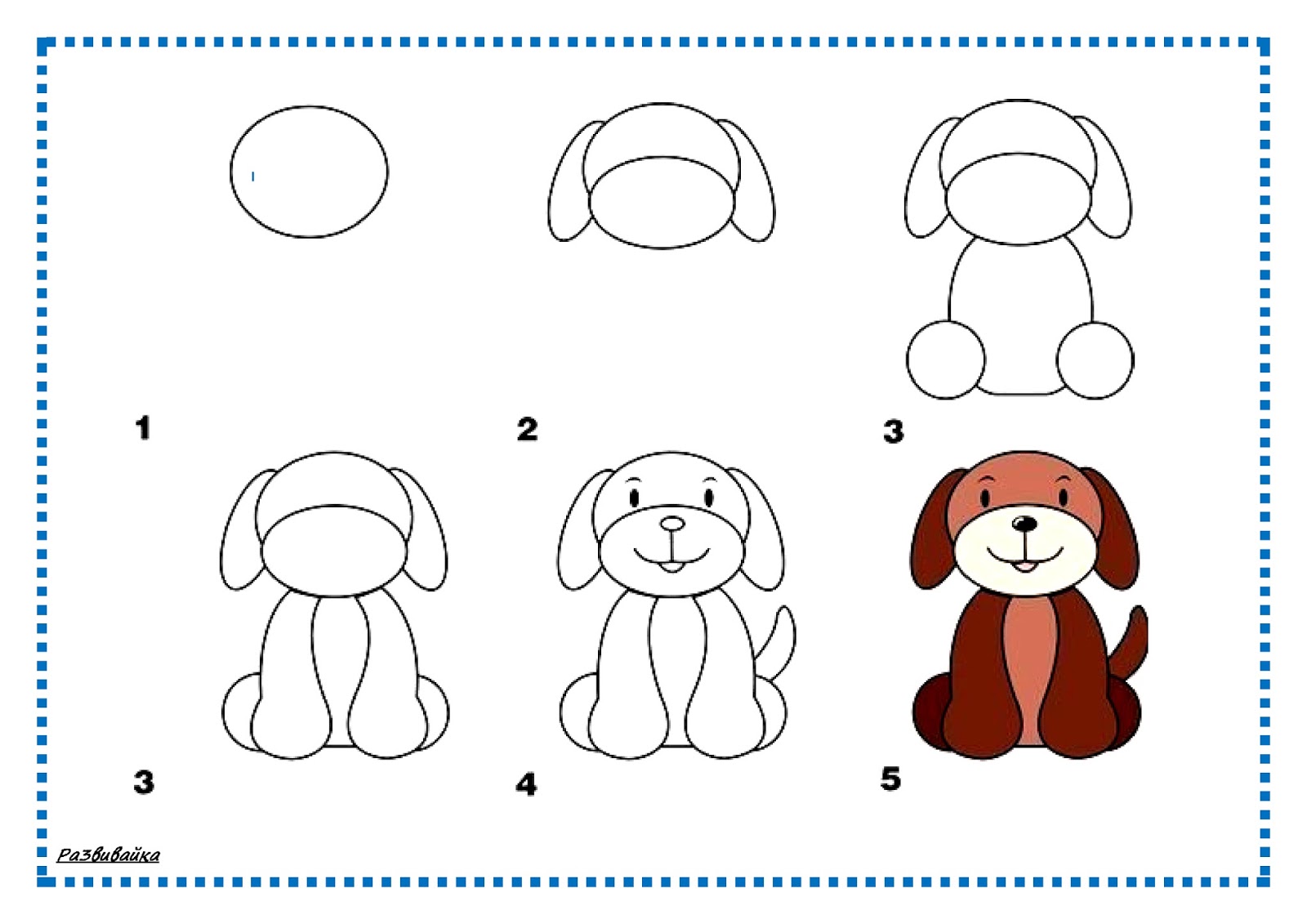 Детям, Животные, Легкие, Поэтапные, Простые, Собаки, Черно-белые