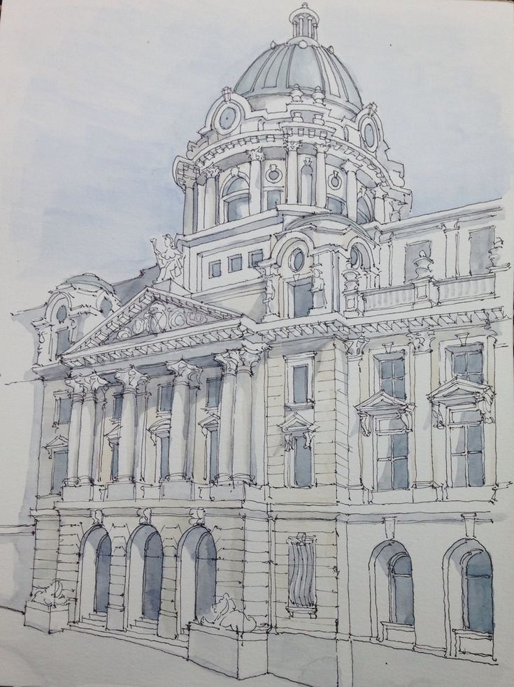 Здание в стиле Барокко рисунок карандашом