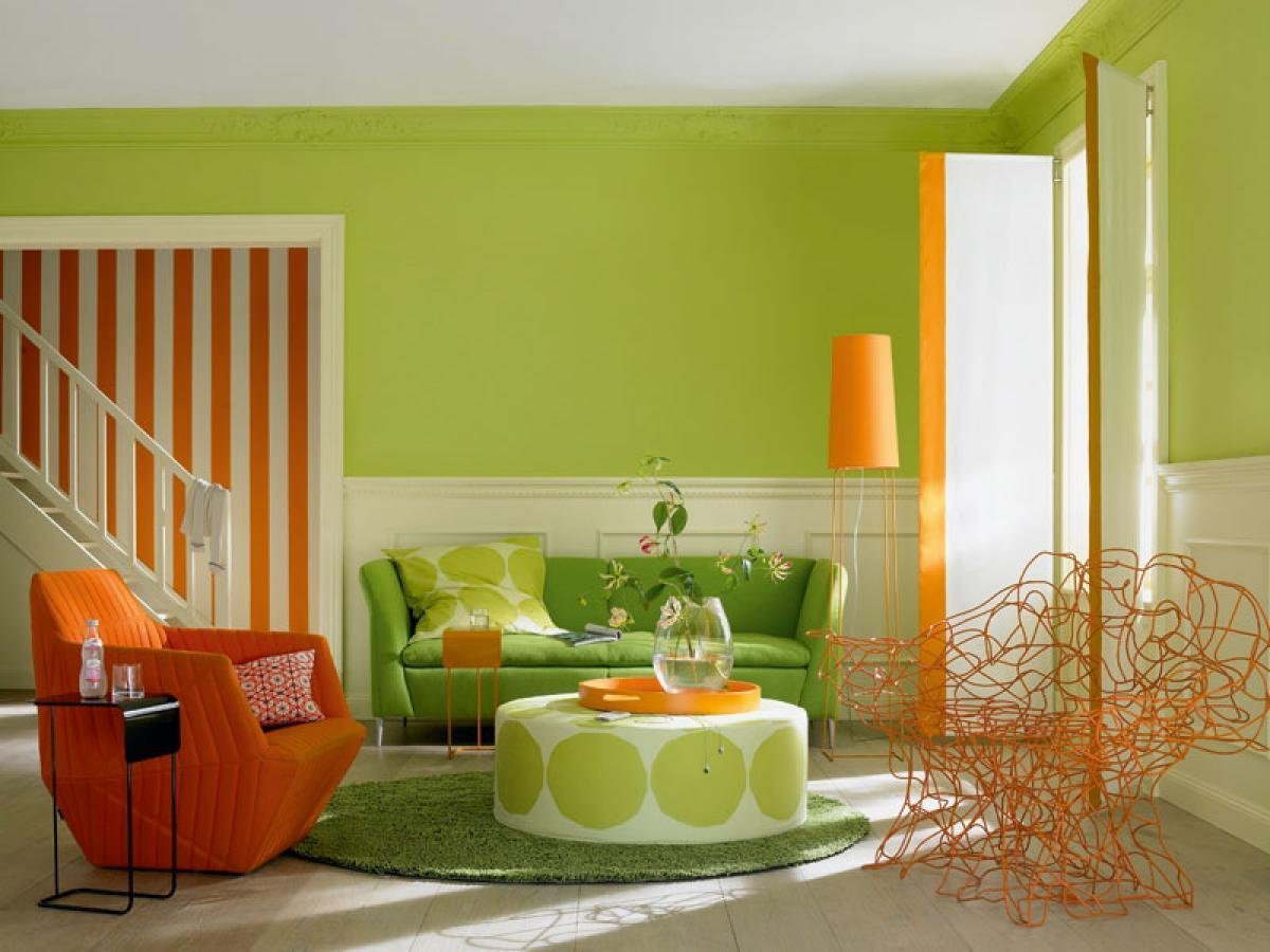 Используя салатовый цвет в гостиной, мебель может быть выполнена в нежно-голубых оттенках, а также уместным дополнением станет декор, выполненный в оранжевых тонах. Если же вы планируете использовать помещение гостиной не только для отдыха с семьей и друзьями, но также и для деловых встреч, то салатовый цвет можно сделать преобладающим над остальными оттенками.