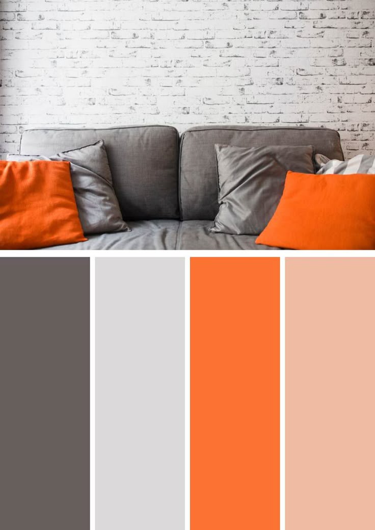 Серый сочетается как с другими нейтральными – белым и бежевым, так и с яркими активными цветами, начиная от синего и красного и заканчивая розовым, сиреневым, оранжевым, желтым.