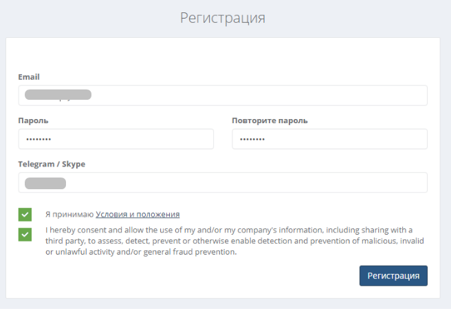 Перед вами появится стандартное окно регистрации, в котором нужно заполнить: