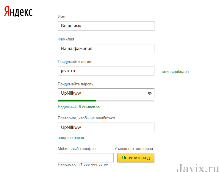Создание почты на Яндексе