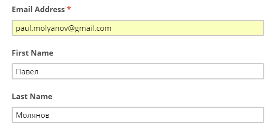 2. В форме введите имя и фамилию.