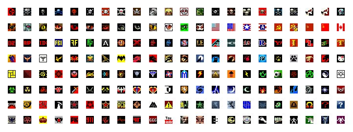Вот, как бы выглядели все эти иконки, будь они одного размера (для наглядности добавлена пиксельная сетка):
