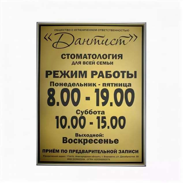 Мы занимаемся изготовлением вывесок для различных организаций уже более 20 лет. В зависимости от ваших целей и места размещения, мы подберем наилучший варант макета вывески и материала для производства.
