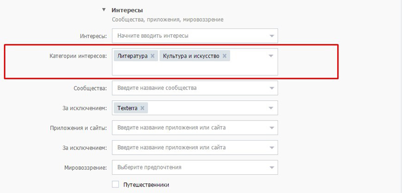 Следует указать возраст, пол, местоположение, а также интересы пользователя с учетом характеристик вашей ЦА.