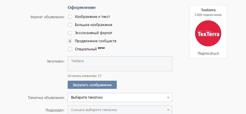 Чтобы запустить рекламную кампанию, необходимо зайти в рекламный кабинет «Вконтакте» – раздел «Таргетинг», пополнить счет на нужную сумму, нажать на кнопку «Создать объявление» и далее следовать инструкции.