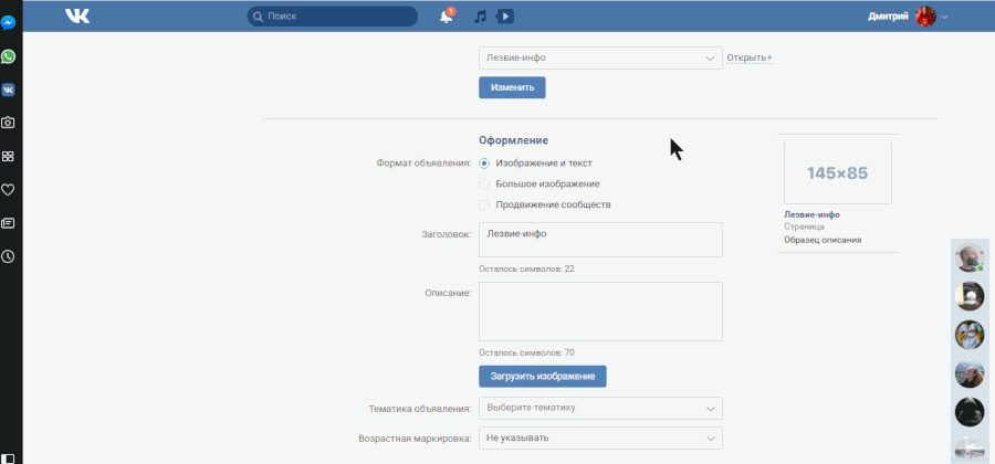 Что такое таргетинг? Таргетинг – это реклама сообщества, приложения, видеозаписи или внешнего ресурса, настроенная под вашу целевую аудиторию. Блоки с таргетированной рекламой показываются в левой части страницы и обычно состоят либо из заголовка и изображения, либо из заголовка, изображения и короткого описания.