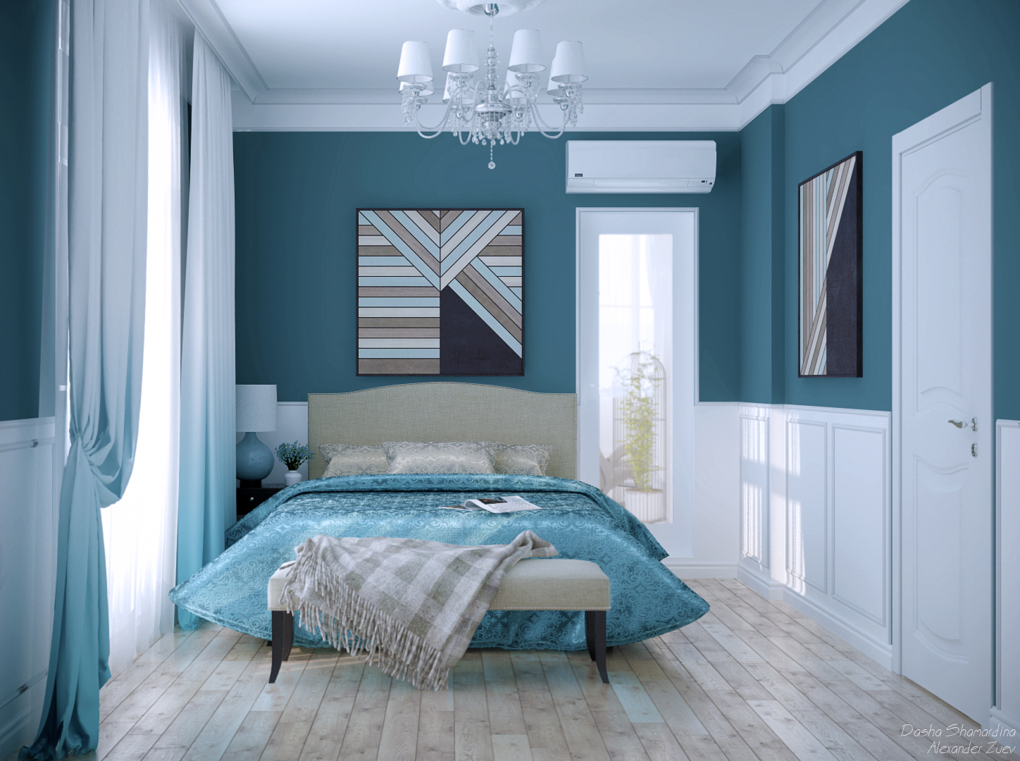 Stained Glass на самом деле темно-бирюзового цвета, но с приглушенным серым оттенком. В то время как бирюзовый цвет может быть действительно ошеломляющим, чтобы представить его на стенах, мутность витража делает его действительно уютным и комфортным, особенно в светлом и ярком пространстве.