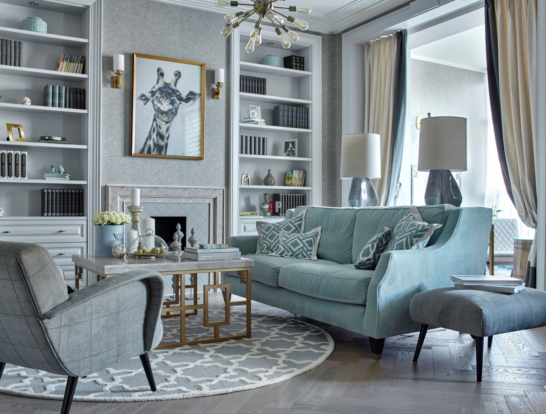 Серо-голубой — действительно один из тех цветов-хамелеонов, которые меняются в зависимости от комнаты, времени суток и освещения.