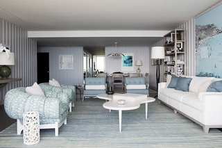 Светло-голубой БЕЗ серого в нем может выглядеть светло-ярким, даже если пастельный – нежно-голубым. Этот оттенок гораздо менее актуален и неподвластен времени по сравнению с более приглушенным, более мягким оттенком серо-голубого.