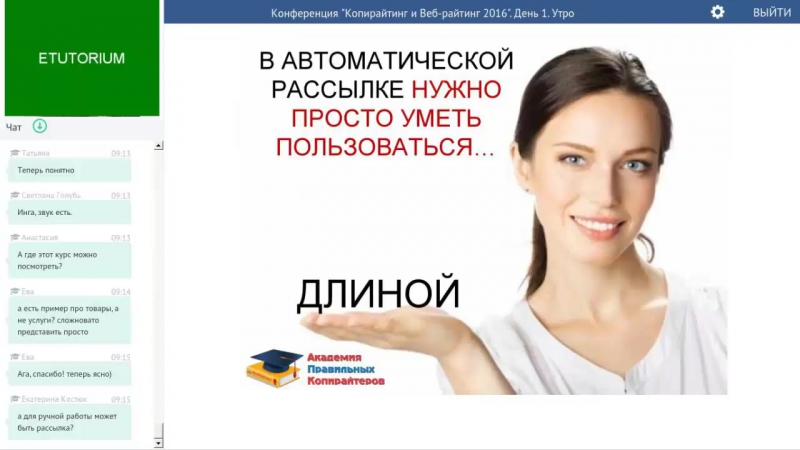 Компания периодически проводит онлайн-тренинги и семинары. Это позволяет представителям малого бизнеса достаточно быстро вникнуть в основы email-маркетинга.