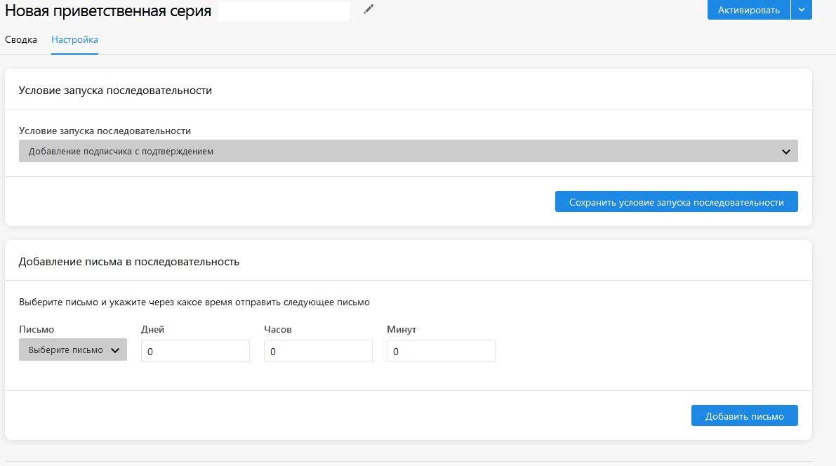 Создание письма в блочном редакторе