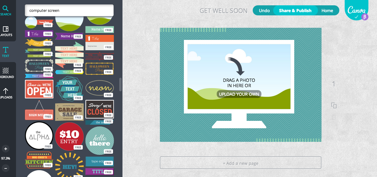 Canva также позволяет загружать собственные изображения и использовать их в своем дизайне, что идеально подходит для добавления вашего логотипа и других фирменных визуальных элементов в контент. (Вы заметите, что текст на изображении ниже изменился — мы вернемся к этому на следующем шаге.)