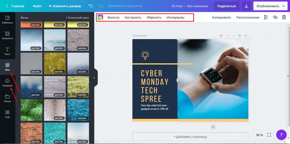 3) Найдите подходящие визуальные эффекты для своей публикации, используя встроенную библиотеку фотографий Canva.