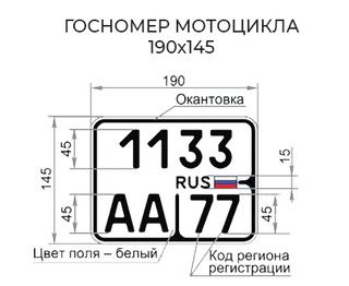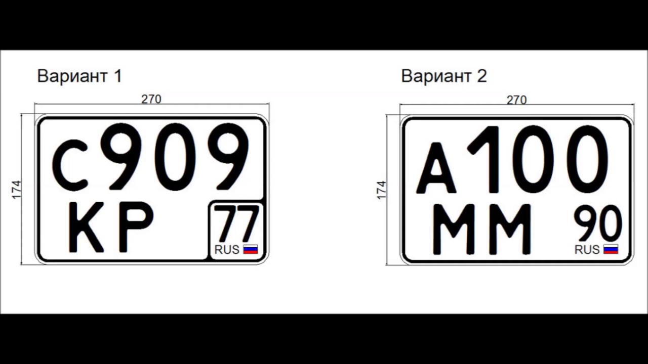 Согласно ГОСТ Р 50577-93 «Знаки государственные регистрационные транспортных средств. Типы и основные размеры. Технические требования» большинство регистрационных знаков имеют вид, указанный на рисунке ниже.