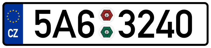 Стандартные размеры регистрационного знака, которые составляют 520×112 мм. Символьные комбинации на стандартных номерных знаках определяются тремя буквами и тремя цифрами. Вышеприведенный ГОСТ Р 50577-93 ссылается на использование 12 букв кириллицы, которые имеют графические аналоги в латинском алфавите: А, В, Е, К, М, Н, О, Р, С, Т, У и Х. Надо заметить, что буквы по размеру шрифта меньше, чем цифры.
