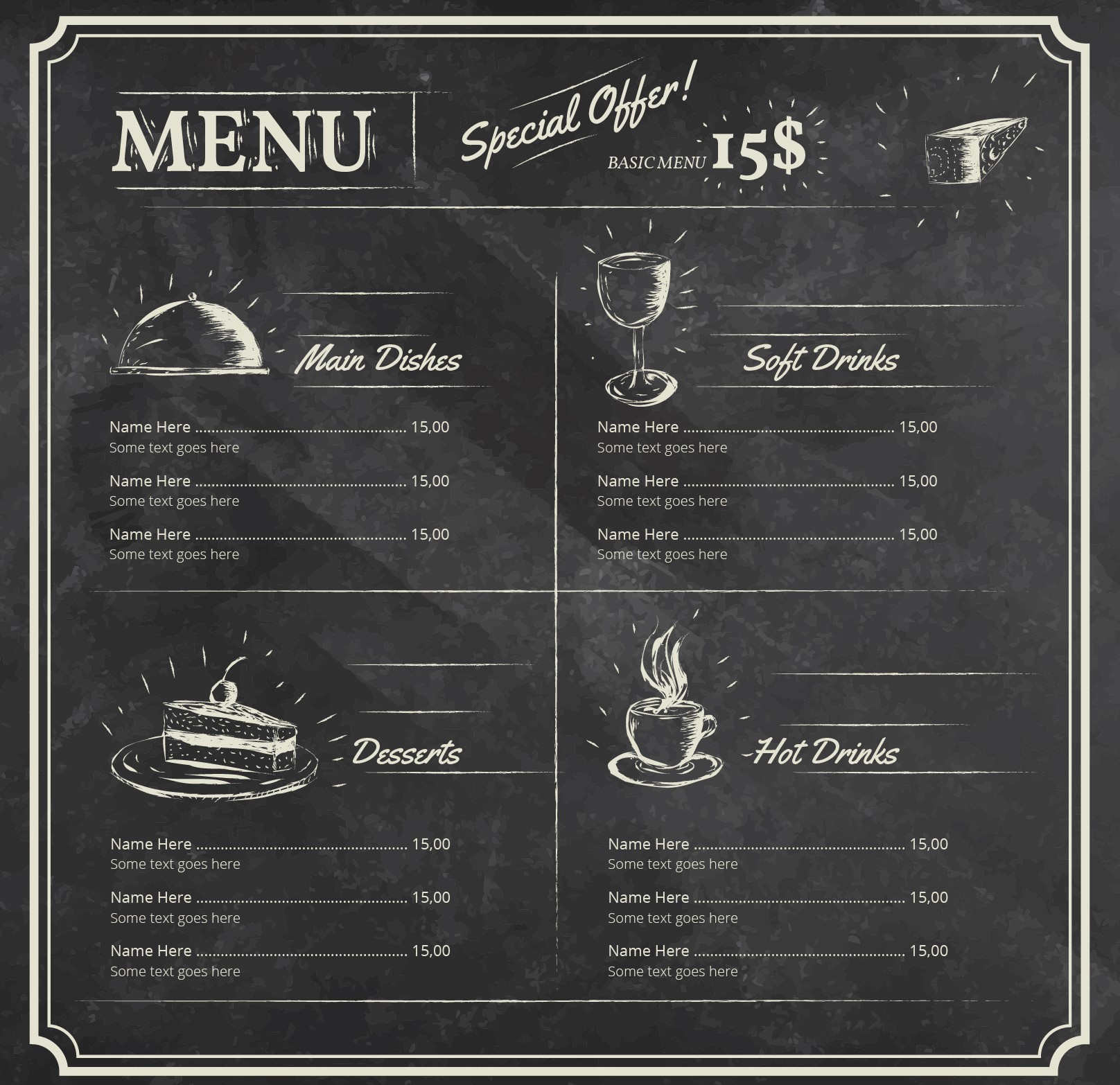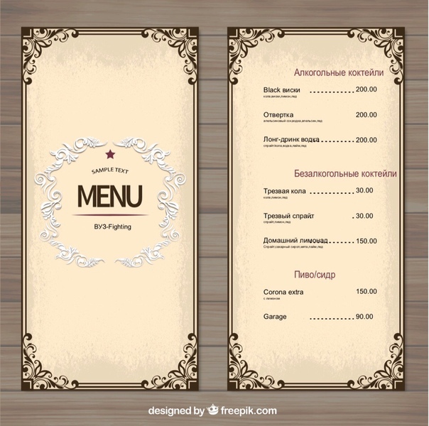 Его основная цель — сообщить о блюдах и напитках, которые вы предлагаете.Но отличное меню также способствует развитию бренда компании. Если ваш выглядит профессионально и привлекательно, это может вызвать доверие и лояльность среди ваших клиентов. Не обращайтесь в дорогие дизайнерские компании, используйте бесплатные шаблоны меню.