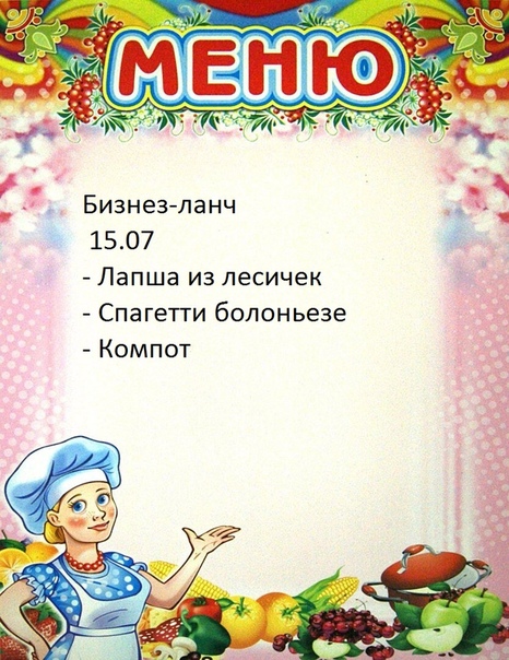 С помощью этого простого шаблона меню меняйте элементы меню каждый день, чтобы отображать блюда дня.