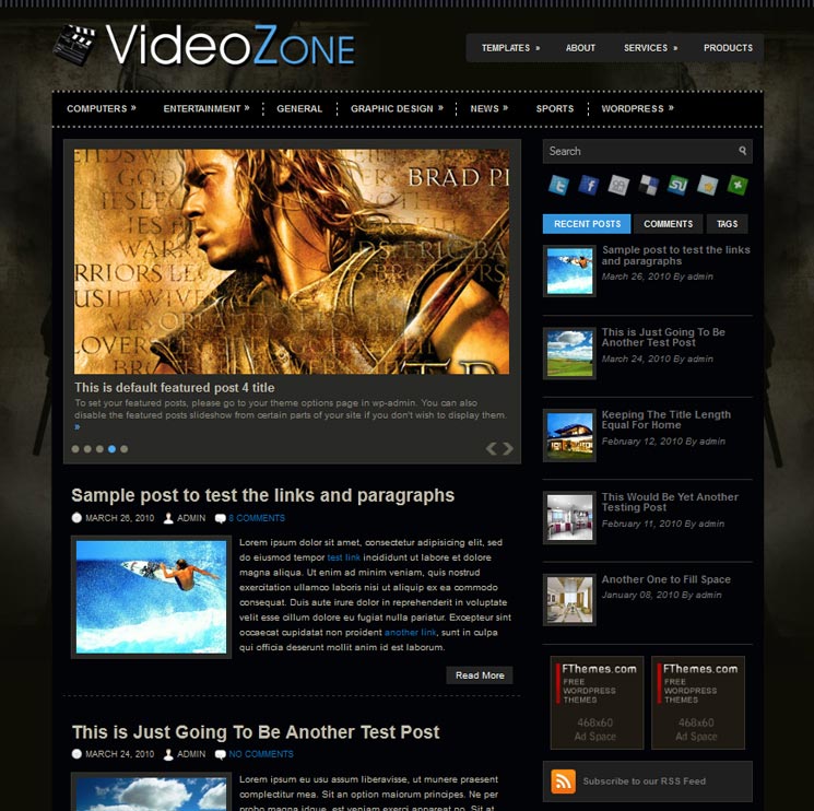 Тема по умолчанию имеет черный и синий дизайн, что обеспечивает игровую атмосферу, так любимую геймерами. Тема включает различные макеты страниц, форматы записей, пользовательские боковые панели и полностью функциональный социальный бар.
