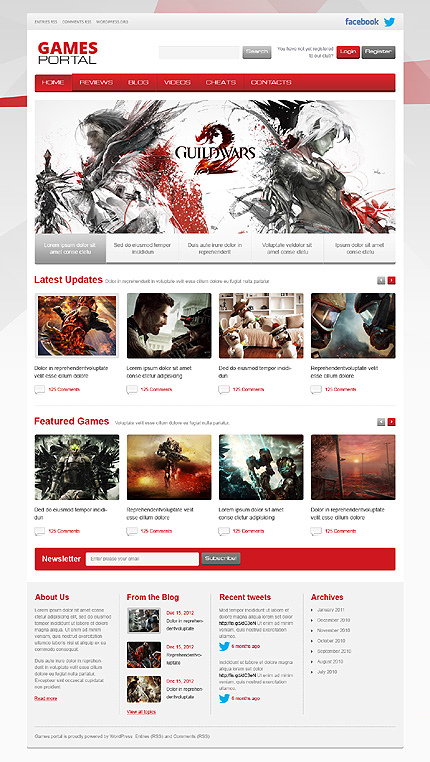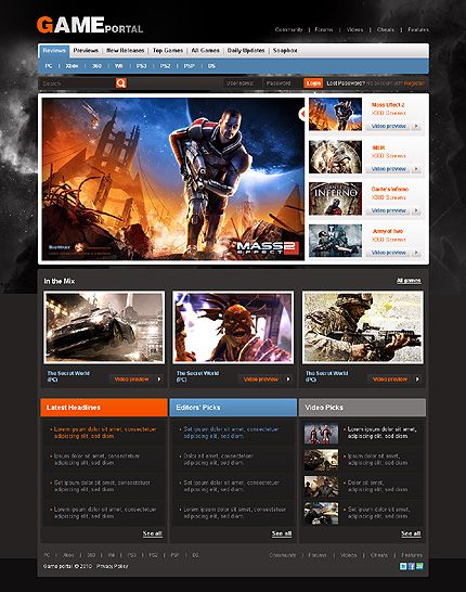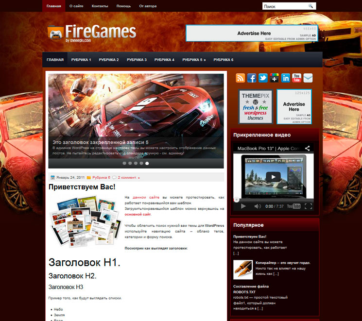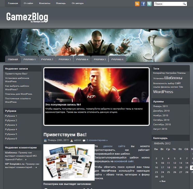 Тема Gameleon предназначена для онлайн-игр, аркад, редакционных и новостных сайтов в игровой сфере.
