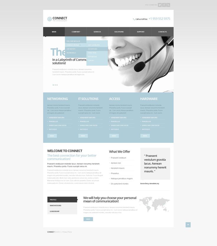 Этот TemplateMonster шаблон совместим со всеми популярными браузерами и полностью готов к SEO. Использовал его несколько раз, причем под совсем разные сферы деятельности заказчиков — впечатления достаточно положительные. Адаптивность присутствует, в админке много настроек, есть установка демо-данных и всякие плюшки.
