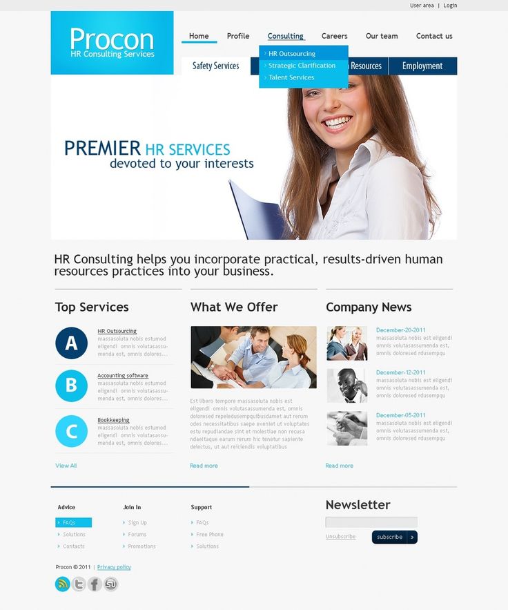 Перед нами responsive-дизайн под все современные устройства, который еще и применим в разных целях: под блог, сайт фирмы или лендинг с предоставлением услуг. Характеристики: