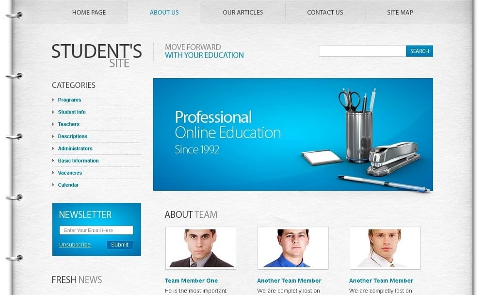 Из соответствующих функций можно выделить галерею и модуль событий с информацией о их датах, местах проведения и т.п. (есть даже элемент с анонсом следующей игры). Тема адаптивна, вооружена множеством настроек в панели и оптимизированным кодом. Из вебформ в наличии: контактная форма, подписка на рассылку + поиск. Характеристики: