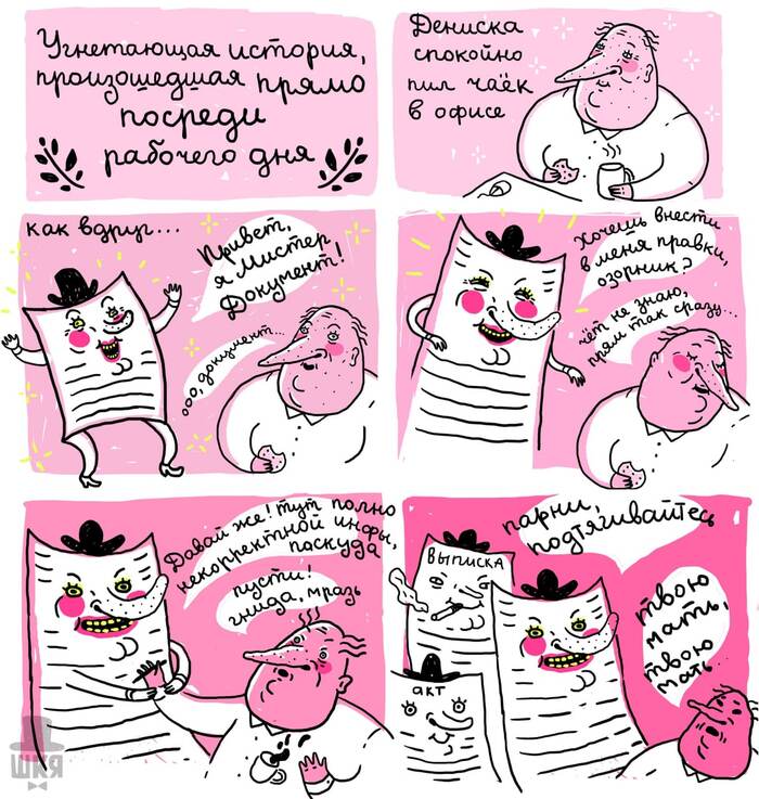 — Рисую с детства, да, хотя «ШКЯ» больше не про рисовку, а про шутки, но они тоже с детства. Группа «ШКЯ» была создана в 2012 году. Наверное, году в 2016-м я стала немного зарабатывать на заказах и продаже открыток, уже точно не помню.