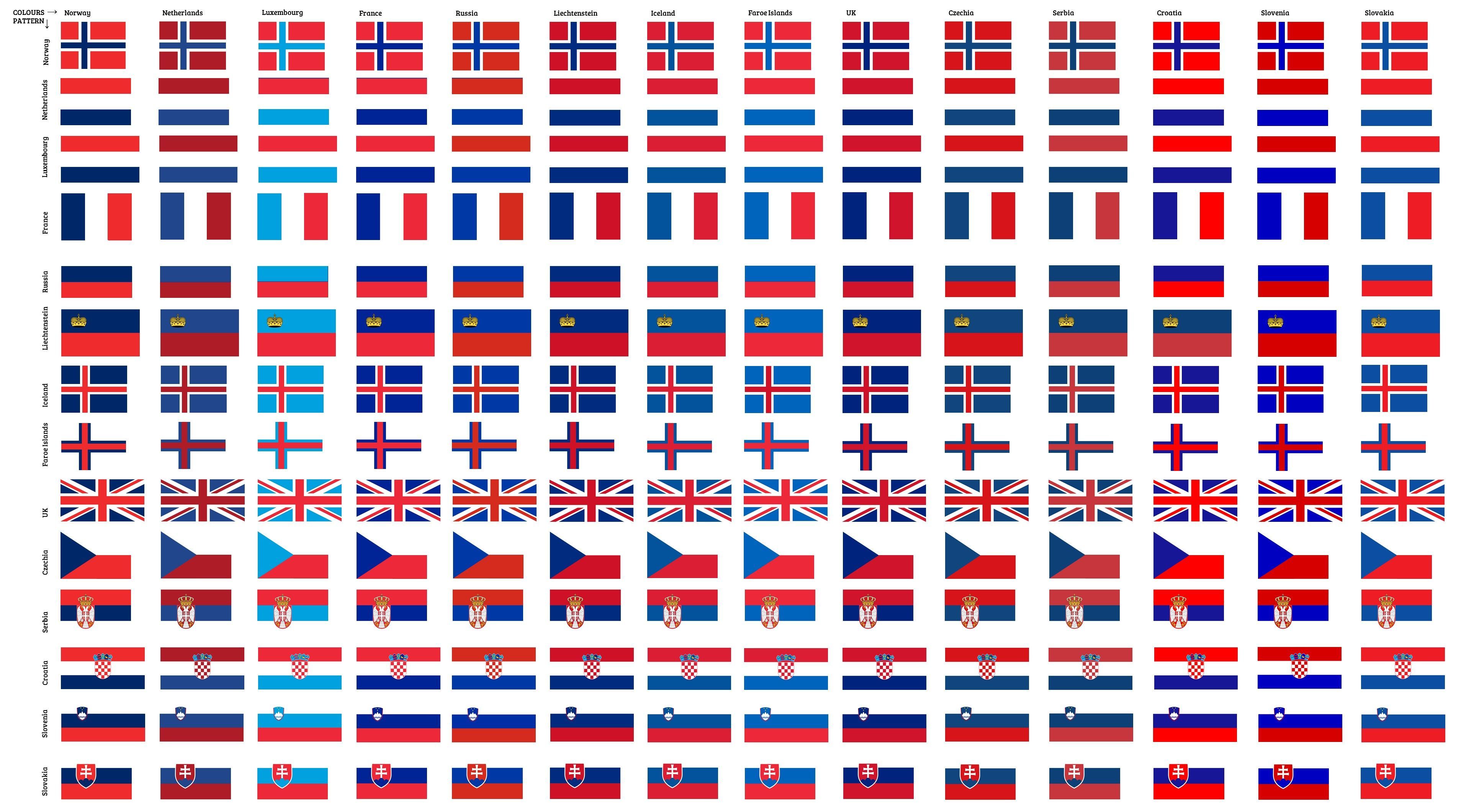 Но на самом деле в этой последовательности, сверху вниз, цвета встречаются только на баннерах трех стран. Это Люксембург, Нидерланды и Хорватия.