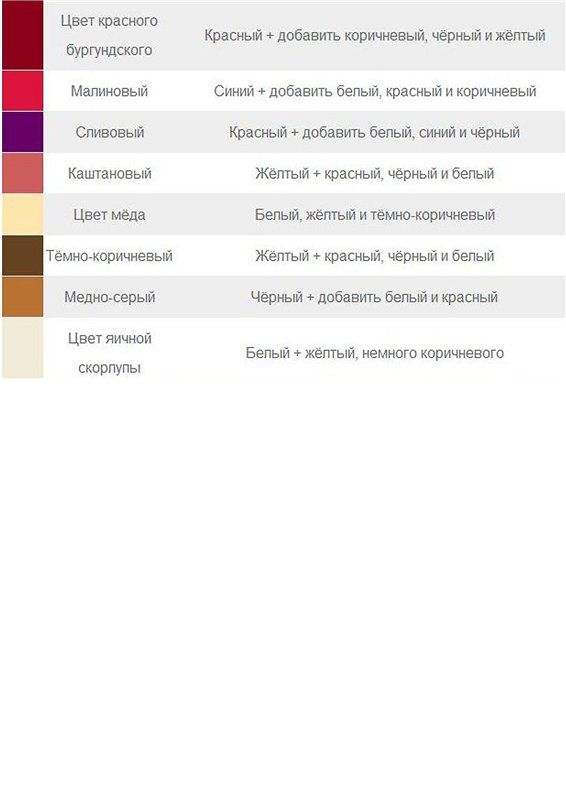 Как получить оттенки серо-коричневогоКакие цвета нужно смешать, чтобы получить коричневый из красок разного типа