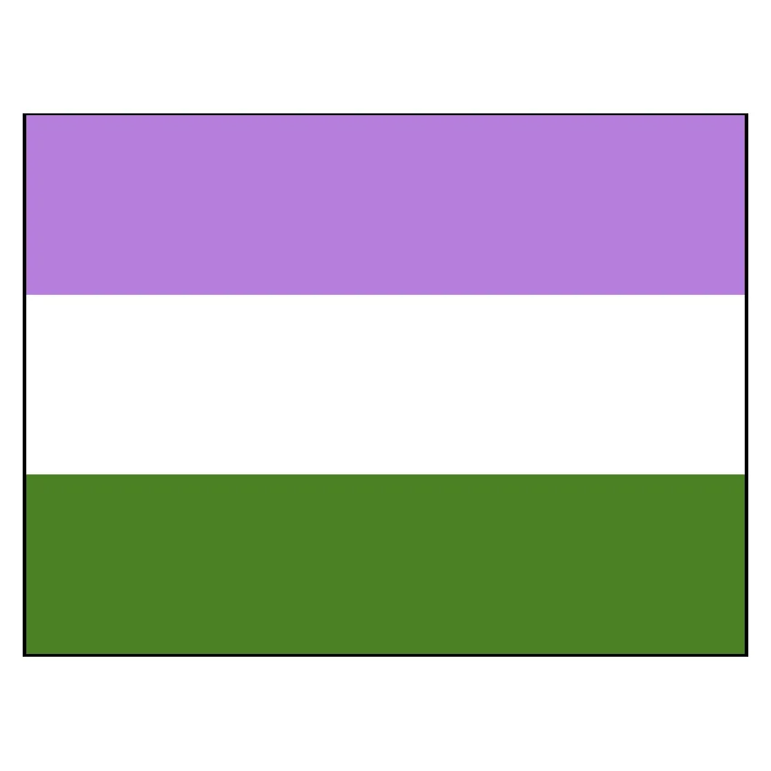 Флаг гордости гендер-квиров был создан правозащитницей и писательницей-гендерквиром Мэрилин Рокси в 2011 году. Флаг имеет три горизонтальные полосы: бледно-лиловую, белую и темно-зеленую. Лаванда, смесь розового и синего, которая традиционно представляет женщин и мужчин, выражает квир-идентичность и андрогинность.
