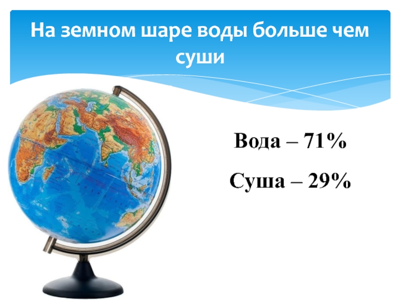 По данным НАСА, процентное соотношение суши и воды на Земле составляет примерно 25% и 75%, хотя некоторые источники утверждают, что процент воды ближе к 71%. Общий объем воды в мире составляет 332,5 миллиона кубических миль.