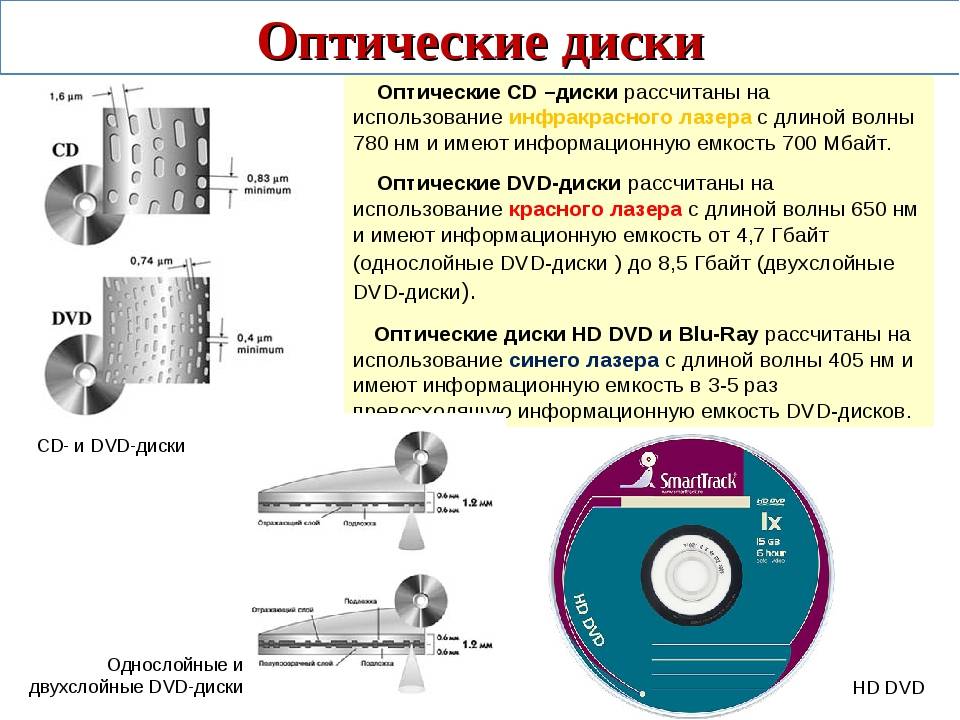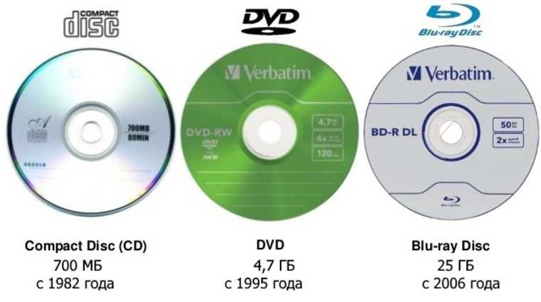 : ΠΊΠΎΠΌΠΏΠ°ΠΊΡ-Π΄ΠΈΡΠΊΠΈ (CD), ΡΠΈΡΡΠΎΠ²ΡΠ΅ ΡΠ½ΠΈΠ²Π΅ΡΡΠ°Π»ΡΠ½ΡΠ΅ Π΄ΠΈΡΠΊΠΈ (DVD), ΡΠ°ΠΊΠΆΠ΅ Π½Π°Π·ΡΠ²Π°Π΅ΠΌΡΠ΅ ΡΠΈΡΡΠΎΠ²ΡΠΌΠΈ Π²ΠΈΠ΄Π΅ΠΎΠ΄ΠΈΡΠΊΠ°ΠΌΠΈ, ΠΈ Π΄ΠΈΡΠΊΠΈ Blu-ray, ΠΊΠΎΡΠΎΡΡΠ΅ ΠΎΠ±Π΅ΡΠΏΠ΅ΡΠΈΠ²Π°ΡΡ ΠΌΠ°ΠΊΡΠΈΠΌΠ°Π»ΡΠ½ΡΡ Π΅ΠΌΠΊΠΎΡΡΡ ΠΈ ΡΠΊΠΎΡΠΎΡΡΡ ΠΏΠ΅ΡΠ΅Π΄Π°ΡΠΈ Π΄Π°Π½Π½ΡΡ