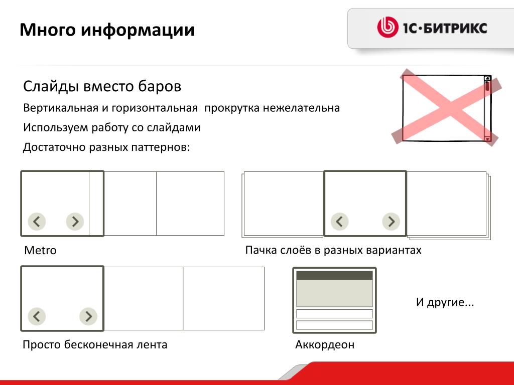 - Даже если пользователь обратит внимание на возможность скролла, он, вероятно, просто не захочет с ним взаимодействовать.