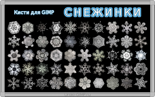 В интернете есть множество готовых кисточек — как в виде снежинок самой разнообразной формы, так и в виде целого снегопада. Последние я скачивал и мне они не сильно понравились, так как некоторые хлопья снега оказывались слишком уж большими, портили весь вид, и в последствии их приходилось убирать ластиком вручную. А вот кисточки-снежинки выглядят довольно красиво.