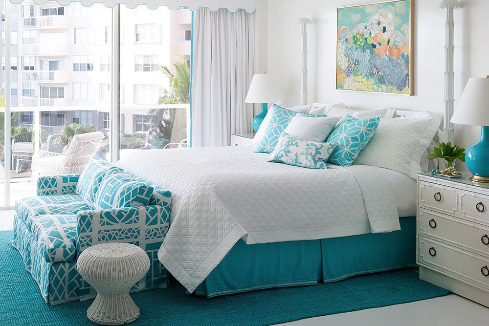 Добавьте тепла в комнату с помощью бирюзового и белого цветов