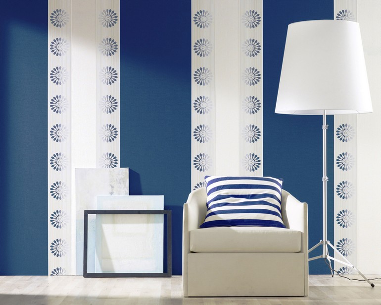 Что подойдет к сине-белым стенам?