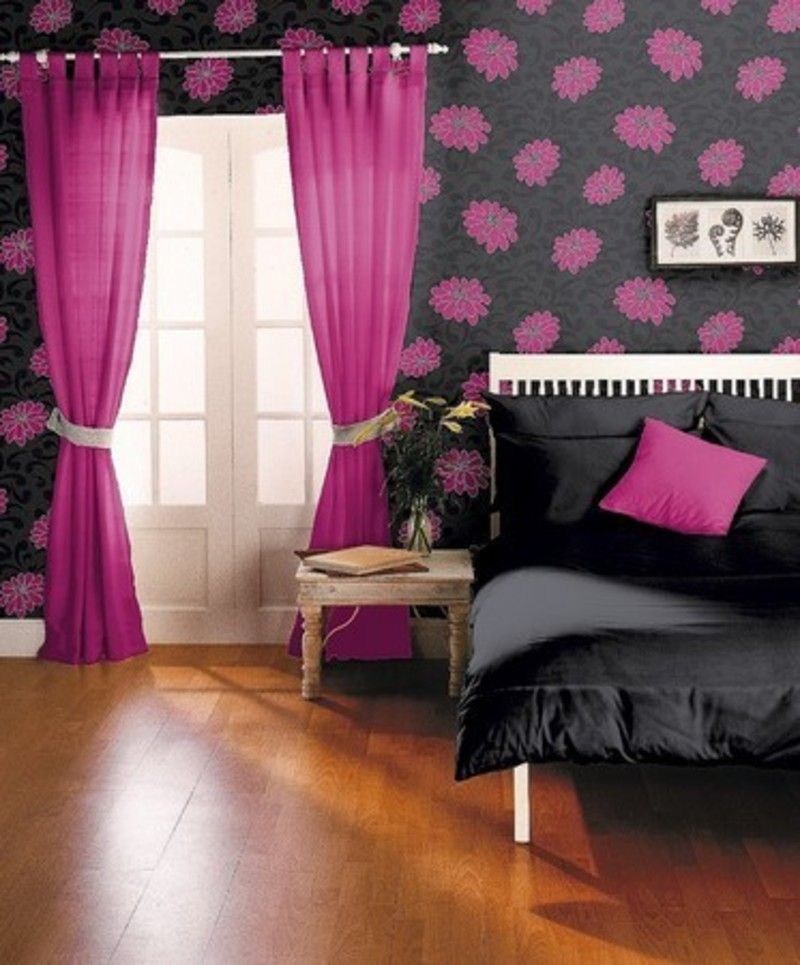 Вот один из примеров потрясающего розово-черного сочетания для спальни. Женственность, придаваемая розовой краской, приглушается черными акцентами.