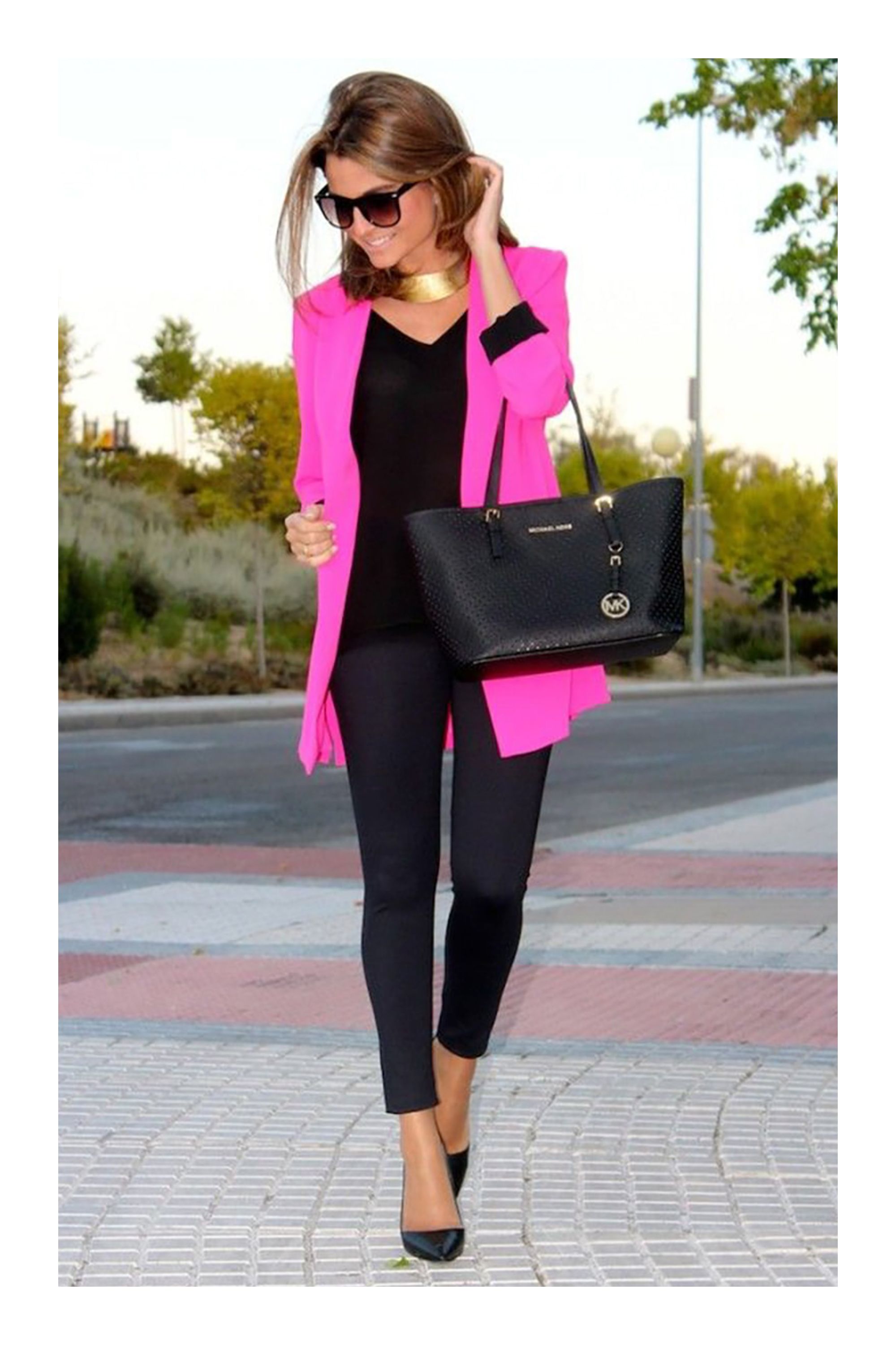 Ну, черный сексуален, а розовый красив. Это идеальный эклер дерзости и класса.От нежного бледно-розового до насыщенного ярко-розового, черный будет легко сочетаться с оттенками розового и сделает наряд более привлекательным. Попробуйте что-нибудь вроде розовой блузки с черной юбкой или брюк с черным массивным ожерельем и сумкой. Или вы можете попробовать розовое платье с черным укороченным жакетом или просто черными аксессуарами. Если вы поклонник вырезов с открытыми плечами, загляните сюда, чтобы узнать, как носить их зимой.