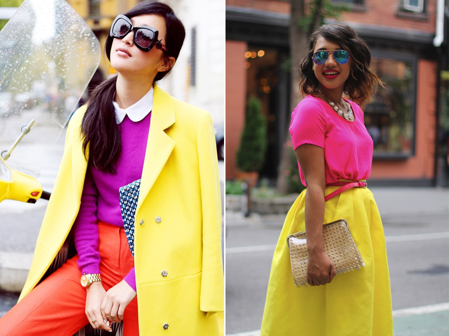 Сочетание этих цветов подходит далеко не всем. На него решатся только дерзкие, уверенные в себе люди. Ни одна летняя коллекция известных дизайнеров не обходится без этого сочетания. Его можно дополнительно разбавить черным, белым, красным.