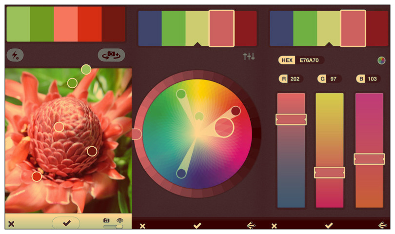 Adobe Color автоматически подберет палитру различных цветов из изображения. Вы также можете настроить Color Mood темы; в этом примере тона выбраны в настроении Красочный …