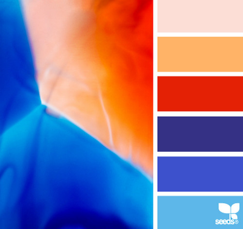 Сочетание синего и оранжевого в интерьере